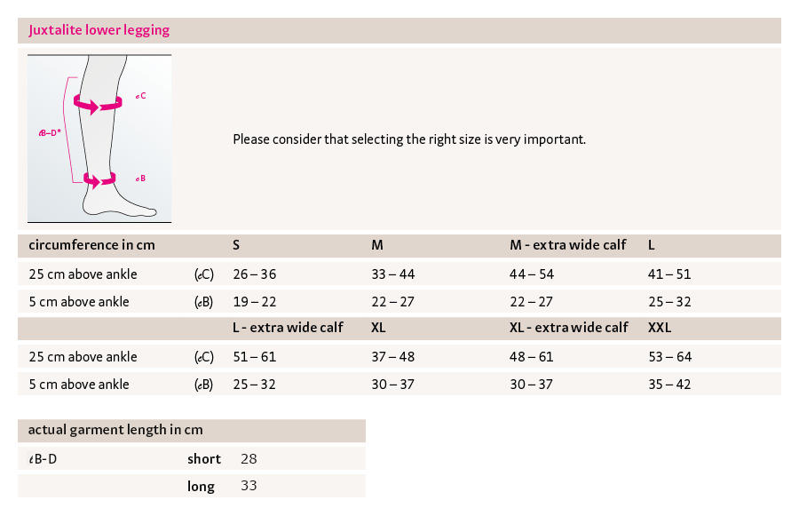 Warto wspomnieć, że Circaid Juxtafit Essentials jest dostępny w 8 rozmiarach i 2 długościach.